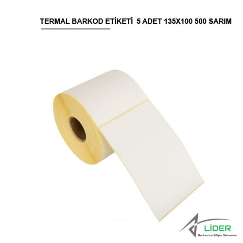 En : 100 mm Boy: 135 mm ölçüsünde tek sıra rulo halinde termal etiket, barkod etiket, rulo etiket
