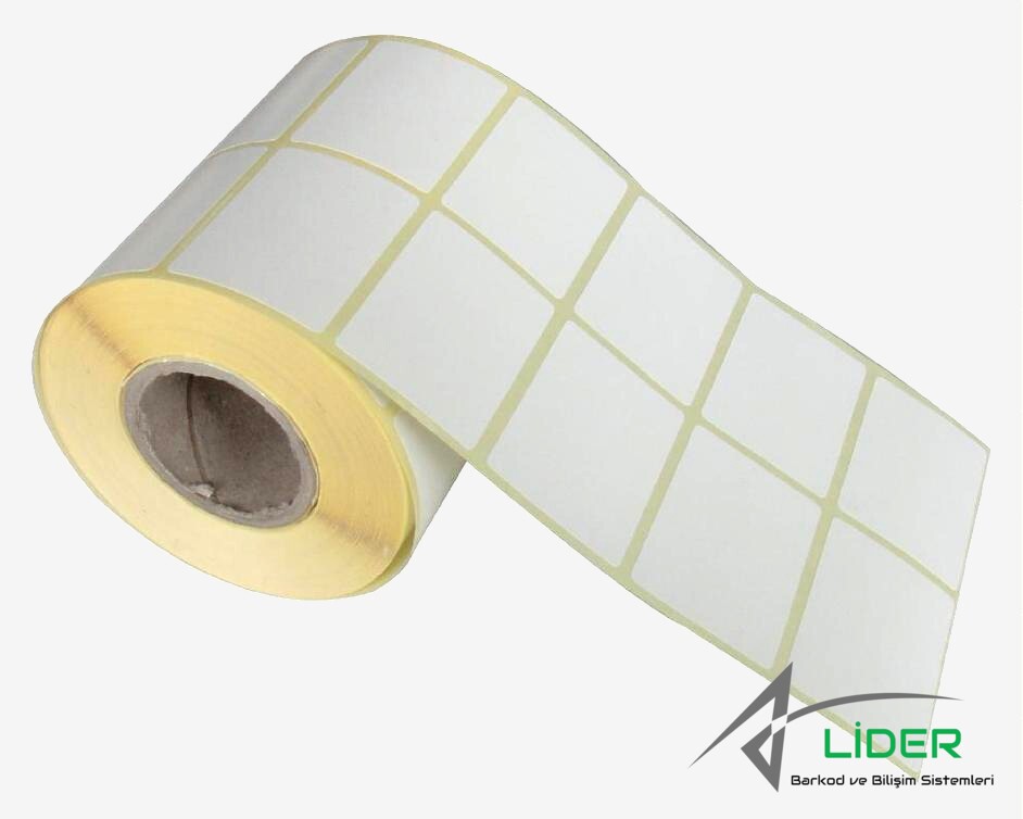 En : 40 mm Boy: 30 mm ölçüsünde iki sıra rulo halinde Kuşe Barkod Etiketi
