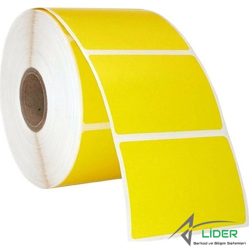 En : 60 mm Boy: 40 mm ölçüsünde tek sıra rulo halinde Sarı Termal Barkod Etiketi